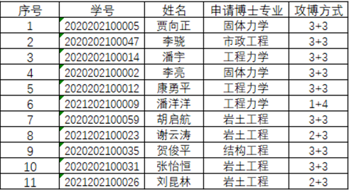 根据研究生院《关于组织学术型硕士研究生中期考核及硕博连读考核的通知》要求,经研究生本人申请、资格审核、综合考核,学院招生领导小组讨论决定拟推荐贾向正等11位同学为硕博连读研究生。现将名单予以公示,公示期5天。