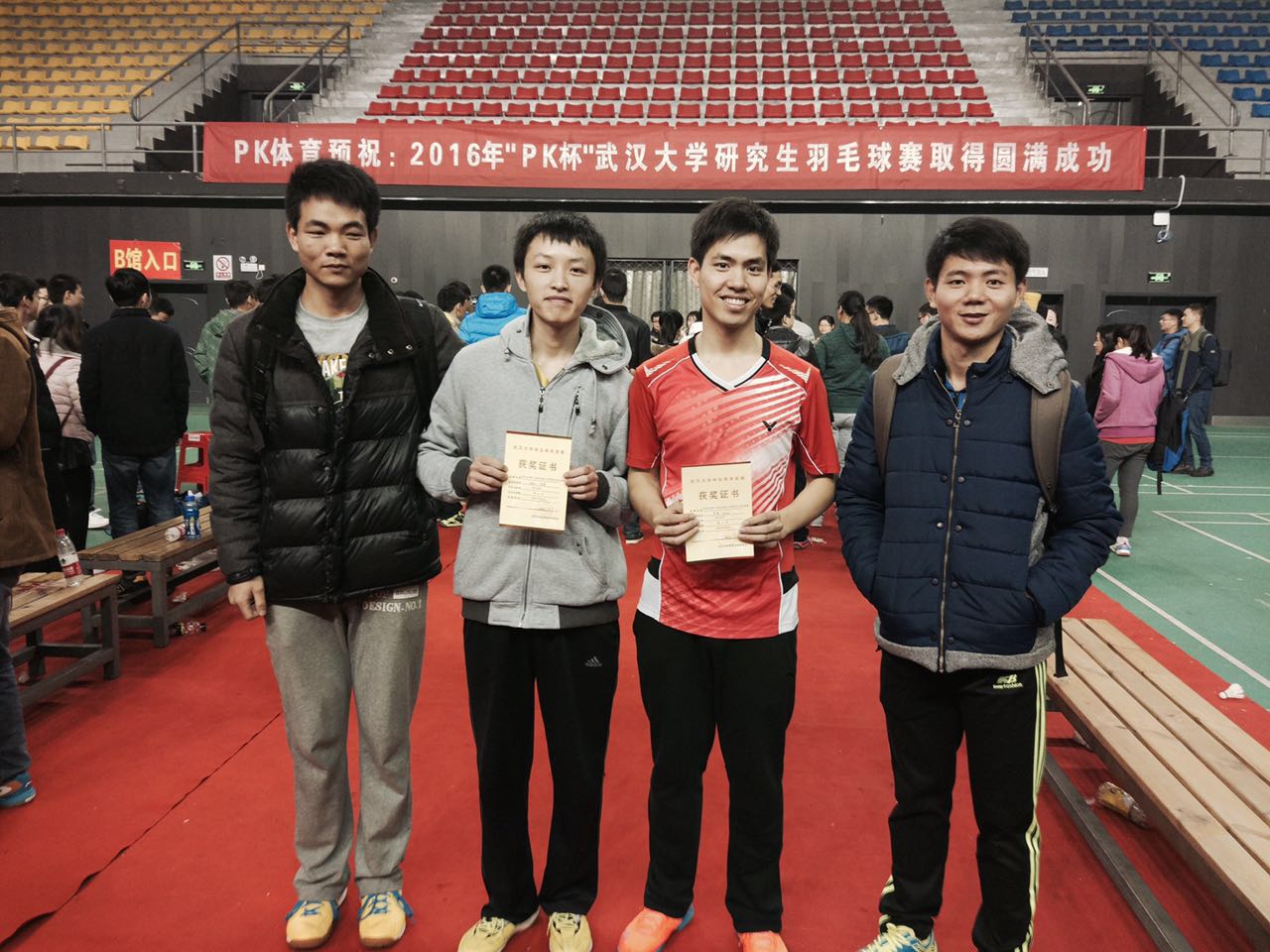 而在这之前的12月19日,由9001cc金沙以诚为本体育运动委员会举办的 “PK体育杯”2016年9001cc金沙以诚为本研究生羽毛球赛在工学部体育馆顺利举行。我院研究生羽毛球队同样收获了好成绩,经过一个月的紧张训练,在男双的比赛中有两组队伍打进了八强,其中一组第二,一组第七。