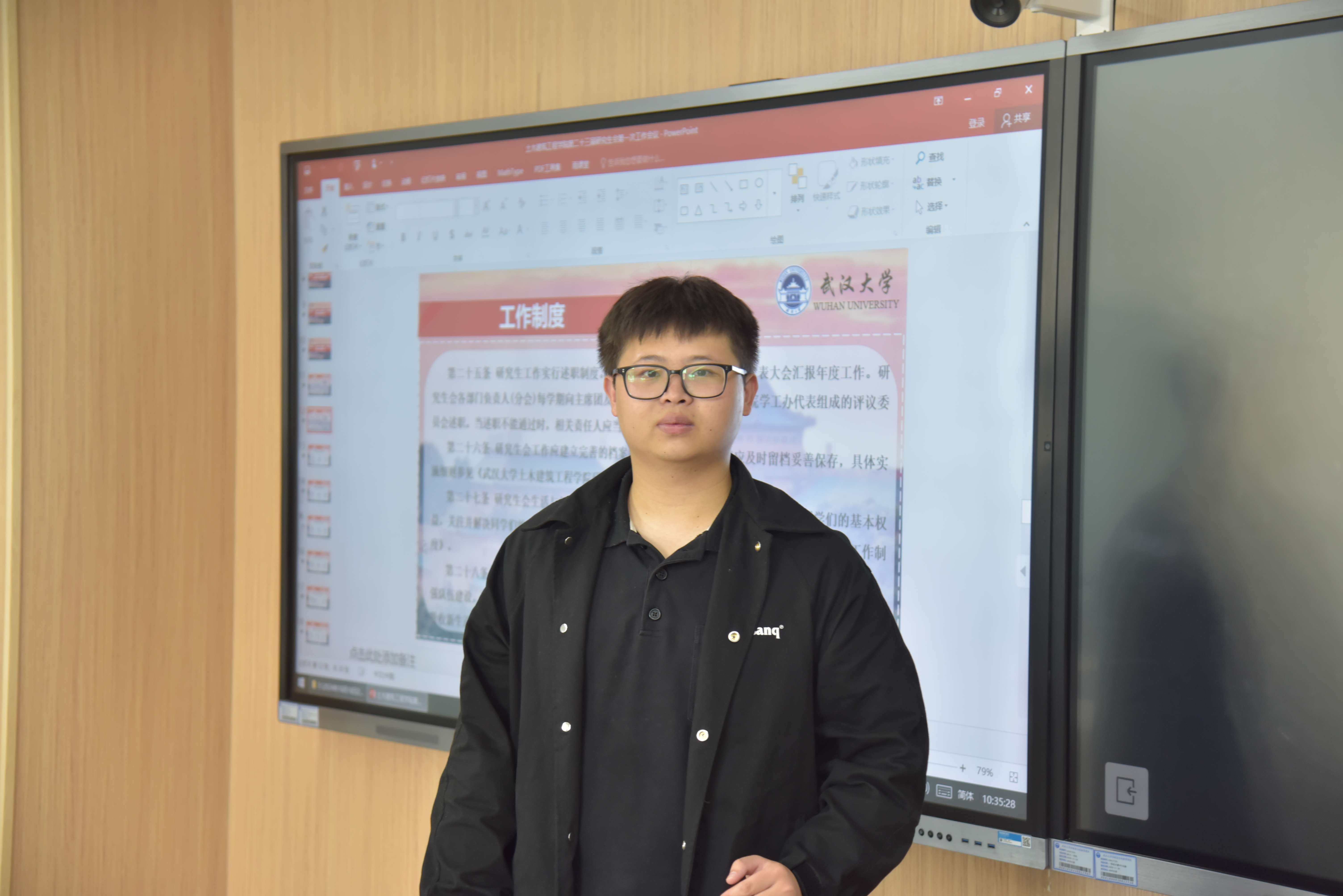 李乐骐同学上台介绍了学术部主要负责举办的各项学术活动,如珞珈方舟绿色建筑论坛、本硕博论坛、给排水论坛、博士生沙龙、土木工程与力学学术论坛等。除此之外,学术部还负责学术相关推文编写以及协助校研会完成工作,如红枫辩论赛宣传、十大学术之星申报等。