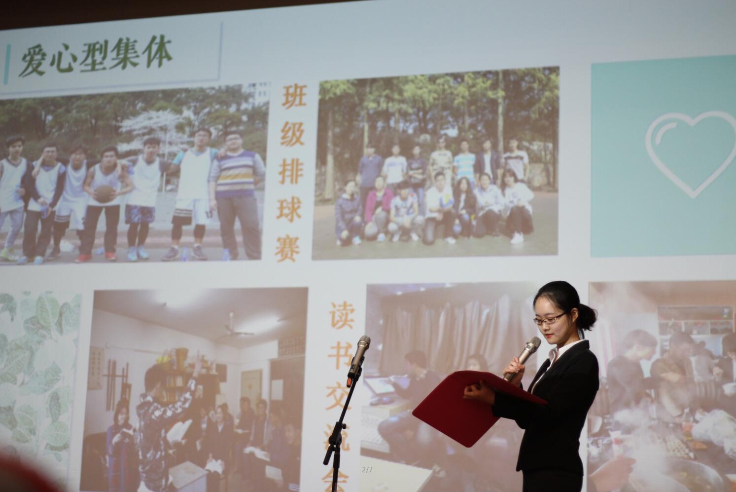 在五分钟的现场展示环节中,卓越二班代表队以PPT形式展示班级风采,并在最后一分半时间为现场观众表演了一段三句半,现场反响热烈。班长祁彦之结合PPT从“学霸型”、“科创型”“团结型”“爱心型”四个班级特色作为切入点,内容生动,富有感染力,不仅充分展示了大学生积极向上的精神风貌,也展示了卓越二班优良的班风学风。